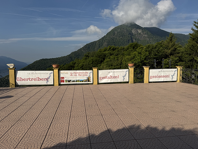 "Wir bleiben im Takt" war das Thema. Stücke mit festem Metrum und gnadenlosen Einsätzen auf die 3. Achtel brachten auch erfahrene und geübte Bläser an ihre Grenzen. Das Gerücht, dass Alphornbläser nicht unbedingt Rhytmiker sind, wurde (leider) ein mal mehr bestätigt. Trotz allem haben wir viel erreicht, sehr viel musiziert, viel gelernt und viel schöne Momente aus der Gegend rund um Trarego mitgenomment.